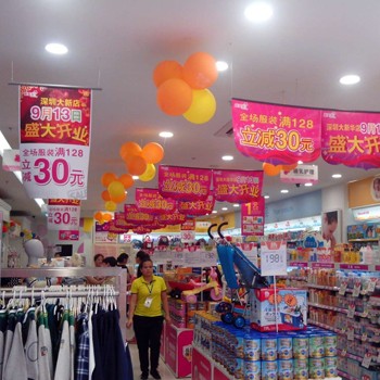 吊旗常見于各類超市賣場,一般懸掛于天花板,以文字和插畫相結(jié)合的形式宣傳產(chǎn)品內(nèi)容或促銷活動。吊旗的外形可根據(jù)內(nèi)容和主題進(jìn)行設(shè)計(jì),吊旗一般呈規(guī)則排列,以達(dá)到廣告促銷的目的,并可以營造活潑的氛圍。