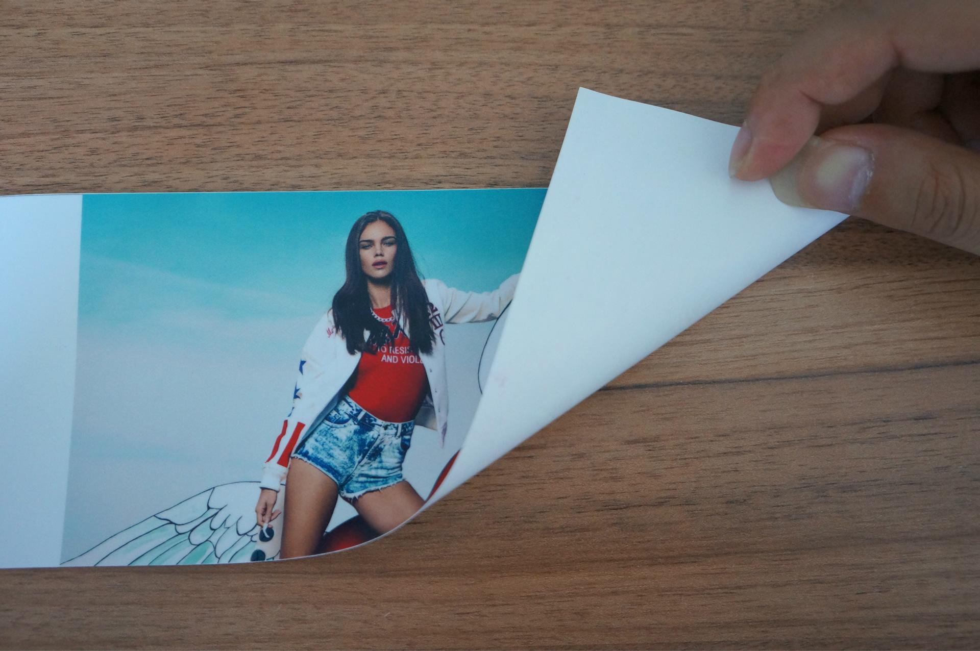 背膠(和PP膠片的區(qū)別在于其有自帶的膠面,客戶撕開后面薄膜后貼在墻體上)